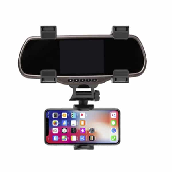 Dizajn držača za telefon s četiri ručke drži vaš telefon čvrsto na mjestu bez obzira na to koliko je cesta neravna. Držač je pogodan za sve mobitele i sve modele automobila. Kopče se mogu podesiti prema debljini i visini retrovizora.